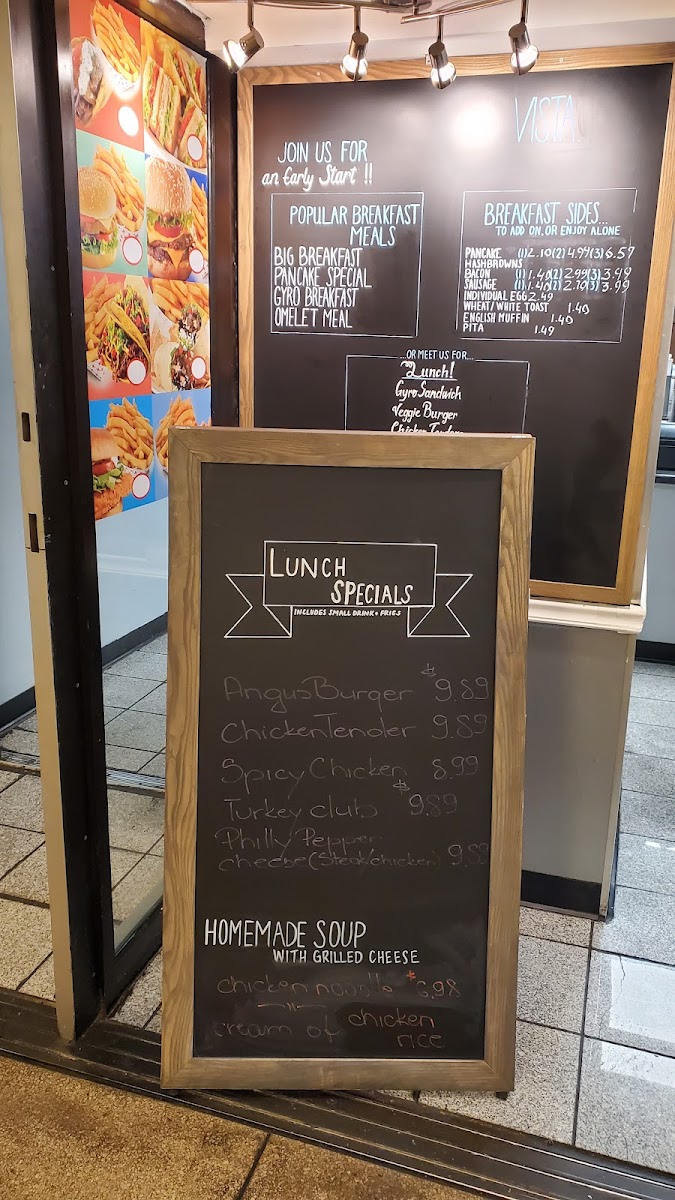 Vista Carry Out Menu offers a delightful mix of hearty breakfast classics and comfort foods, perfect for those seeking a satisfying meal on the go. One of the standout features of the menu is the Big Breakfast, a filling and flavorful option that promises to kickstart your day. For fans of a sweet start, the Pancake Special provides a warm, indulgent treat that pairs well with a side of crispy Hashbrowns or savory Cornbeef Hash. Whether you're craving something sweet or savory, these options are guaranteed to satisfy.